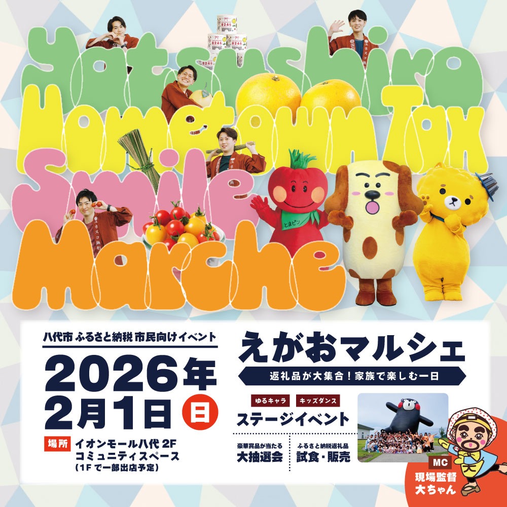 八代市ふるさと納税 市民向けイベント『えがおマルシェ』〜返礼品が大集合!家族で楽しむ1日〜を開催します